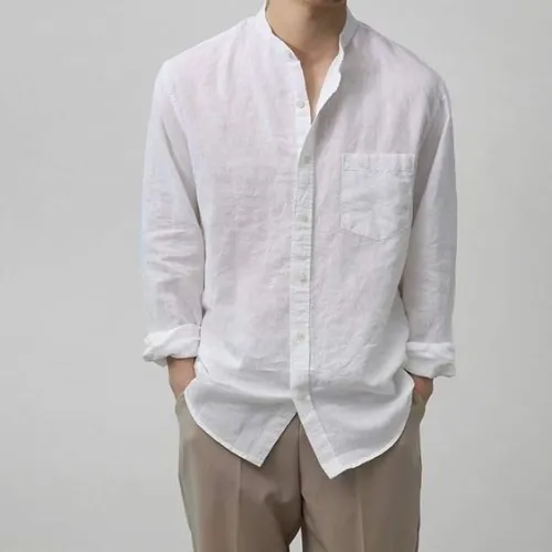 Be the first to review “White Premium Linen Shirt, Band Collar, Full Sleeves”